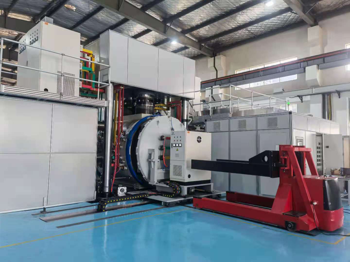 真空擴散焊接設備由加壓主機系統、液壓系統、加熱系統、真空系統、真空室及爐門開閉系統、氬氣循環快冷系統、循環水冷卻系統、控制系統等組成。